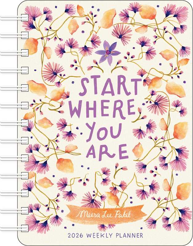 [AMP] Enjoy the journey while you stay organized and navigate life with the Meera Lee Patel Start Where You Are 2026 Weekly Planner. For those who look for the beautiful, simple moments in daily life, this planner showcases hand-lettered encouragement, vibrant watercolor art of flowers and nature, and thought-provoking writing prompts inspired by Meera's bestselling journal Start Where You Are: A Journal For Self-Exploration, as well as Create Your Own Calm: A Journal For Quieting Anxiety, and Go Your Own Way: A Journal For Building Self-Confidence. Features include: - 5" x 7" planner (10" x 7" open) - Compact size is perfect for your handbag, tote, or backpack while commuting or traveling - Wire-O binding offers lay-flat ease and convenience - Elastic band closure - Printed on FSC® certified paper with soy-based ink - 12-month planner: January–December 2026 - Two bonus months: December 2025 and January 2027 - Monthly two-page-spread views facilitate big