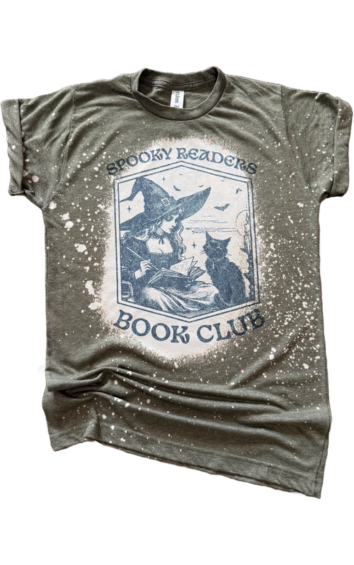 Spooky Readers Book Club - Witch + Cat Bleached Tee