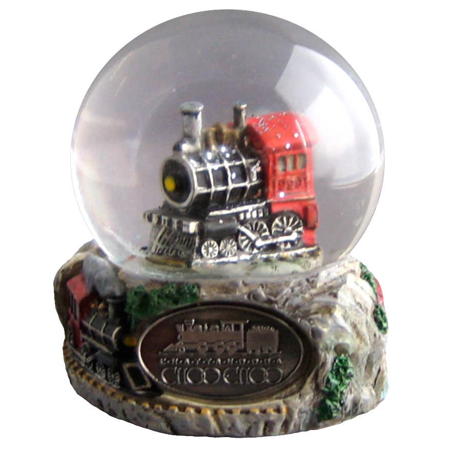 Our deluxe Wine Train snow globe have exquisite hand painted details. The water filled globe is glass, not plastic, and sits on a solid resin base that has a Napa Valley metal plaque.