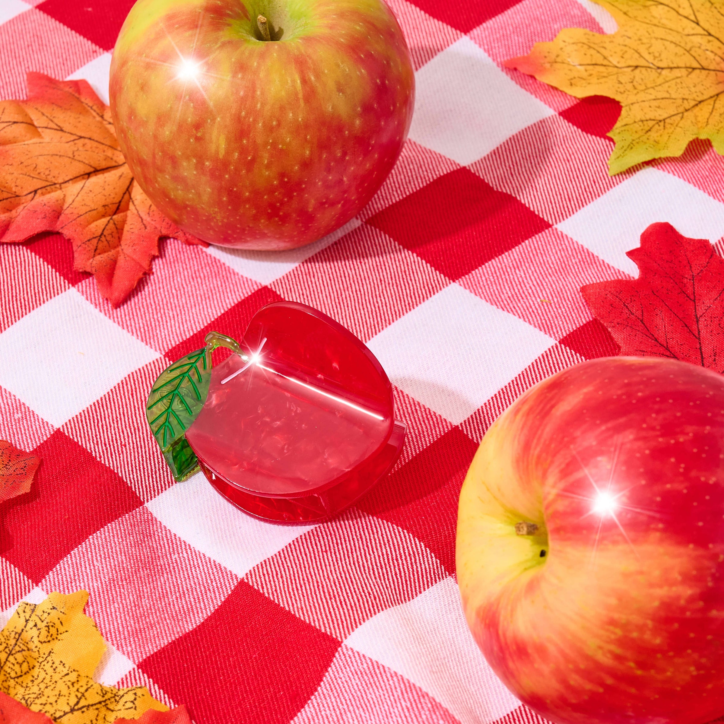 Our Midi Red Apple Hair Claw is crisp, cute, and ready to wear! At 2" x 2.25", this acetate clip is handmade and painted with vibrant apple details. Strong enough for daily use, it’s the perfect fruit hair accessory for autumn outfits, school days, and apple lovers everywhere.