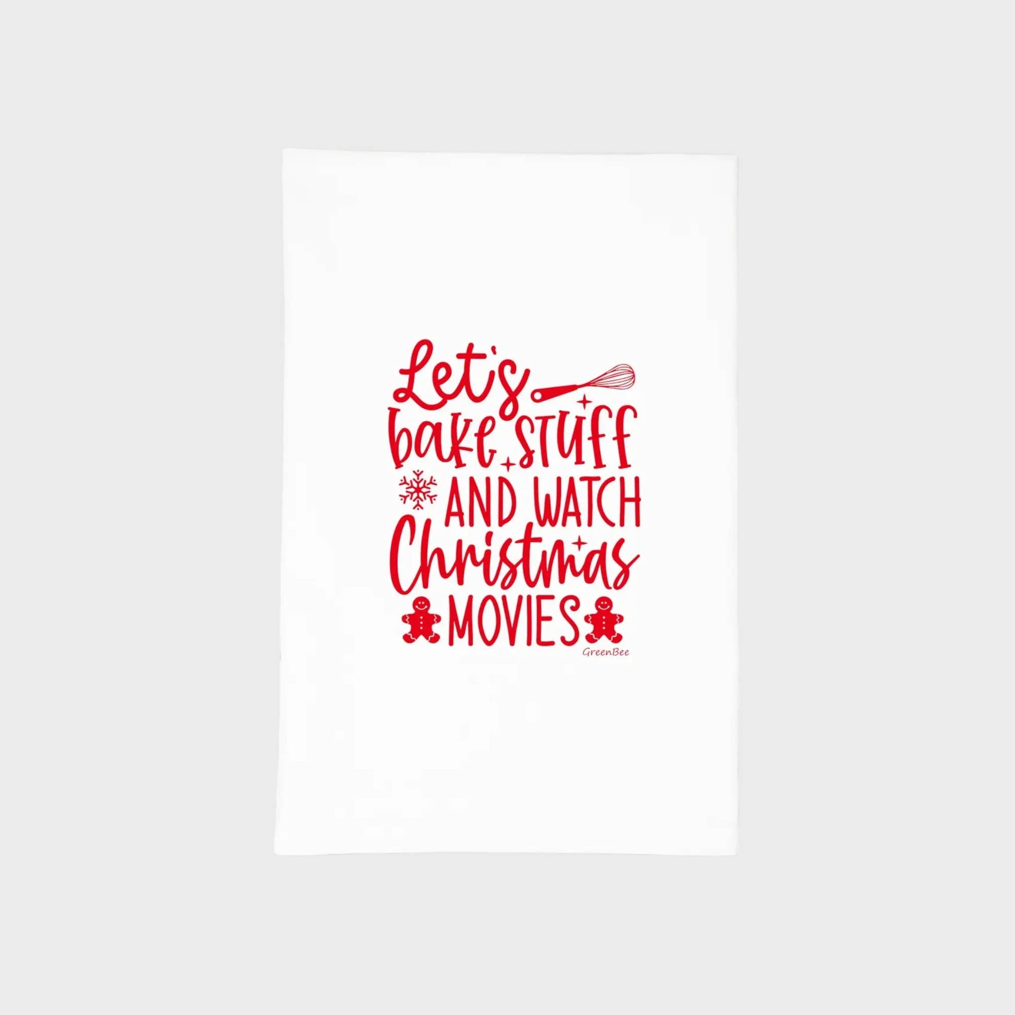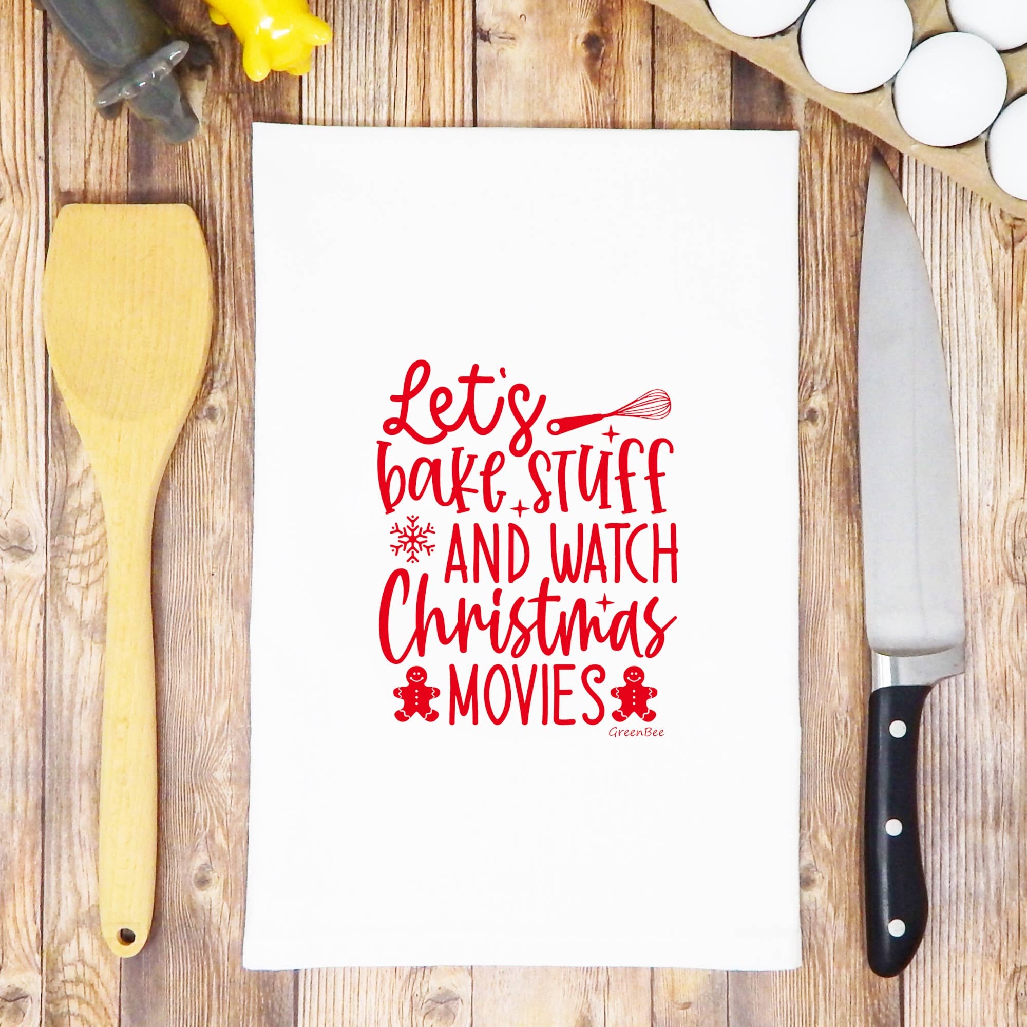 This ' Let's Bake Stuff and Watch Christmas Movies Kitchen' tea towel is a low maintenance tea towel for high maintenance messes. Our tea towels are: *100% cotton *Handprinted in Missouri *Printed with durable specialty inks *Pre-washed and shrinked *Approx 28" x 28" *White with a hanging loop Green Bee Tea Towels was founded by Rena in 2015 to provide products that are not only fun and beautiful but that are also functional and durable. Our tea towels require no special care, the care instructions are as follows: *Machine wash - warm water *Tumble dry - low *Iron & bleach optional Due to the handmade nature of our tea towels, each will have slight variations in size, texture and image placement. People also search: Kitchen Towels, Dish Towel, Dish Cloth, Funky Tea Towels, Wedding Towels, White Teatowel, Home Gifts Store, Gifts To Do At Home Pefect for: Homeware, Giftware, Printed Towels, Kitchen Decor, Good Homeware Gifts, Tea Towel With Hook, Home Kitchen Towels, Christmas 2025, christmas decor, chri