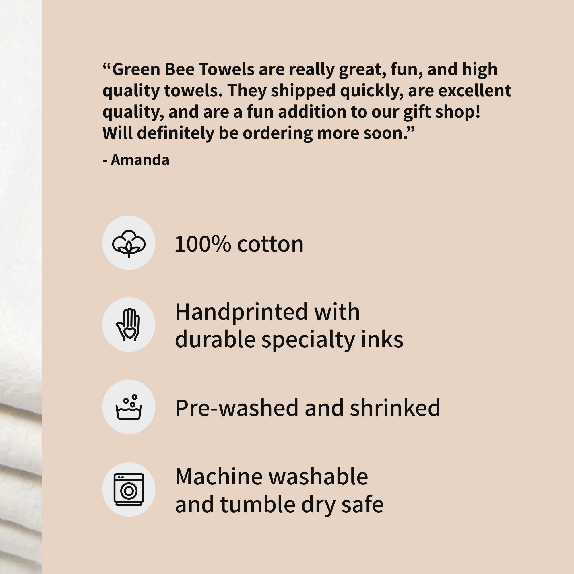 Green Bee Tea Towels was founded by Rena in 2015 to provide products that are not only fun and beautiful but that are also functional and durable.